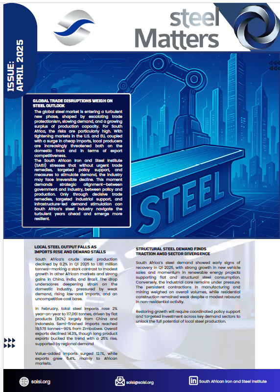 The April 2025 SteelMatters highlights declining local output, rising imports, global trade pressures, policy responses, and steel demand sector trends.