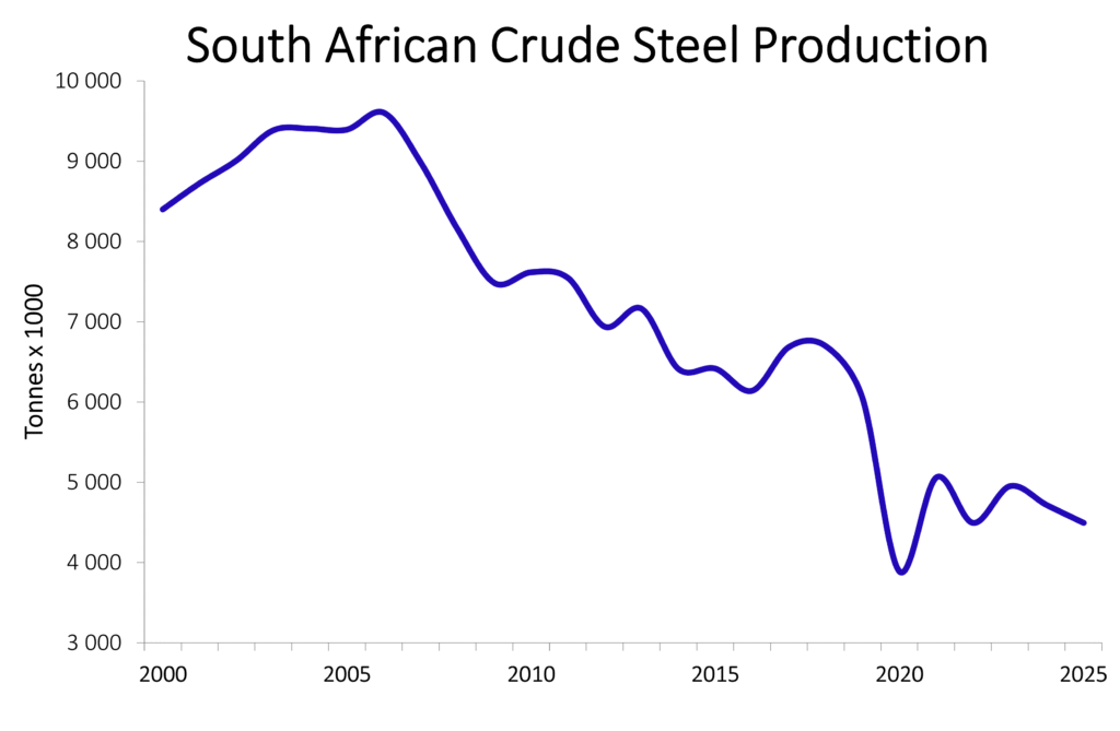 2025 Confirms Structural Weakness in South Africa’s Crude Steel Production